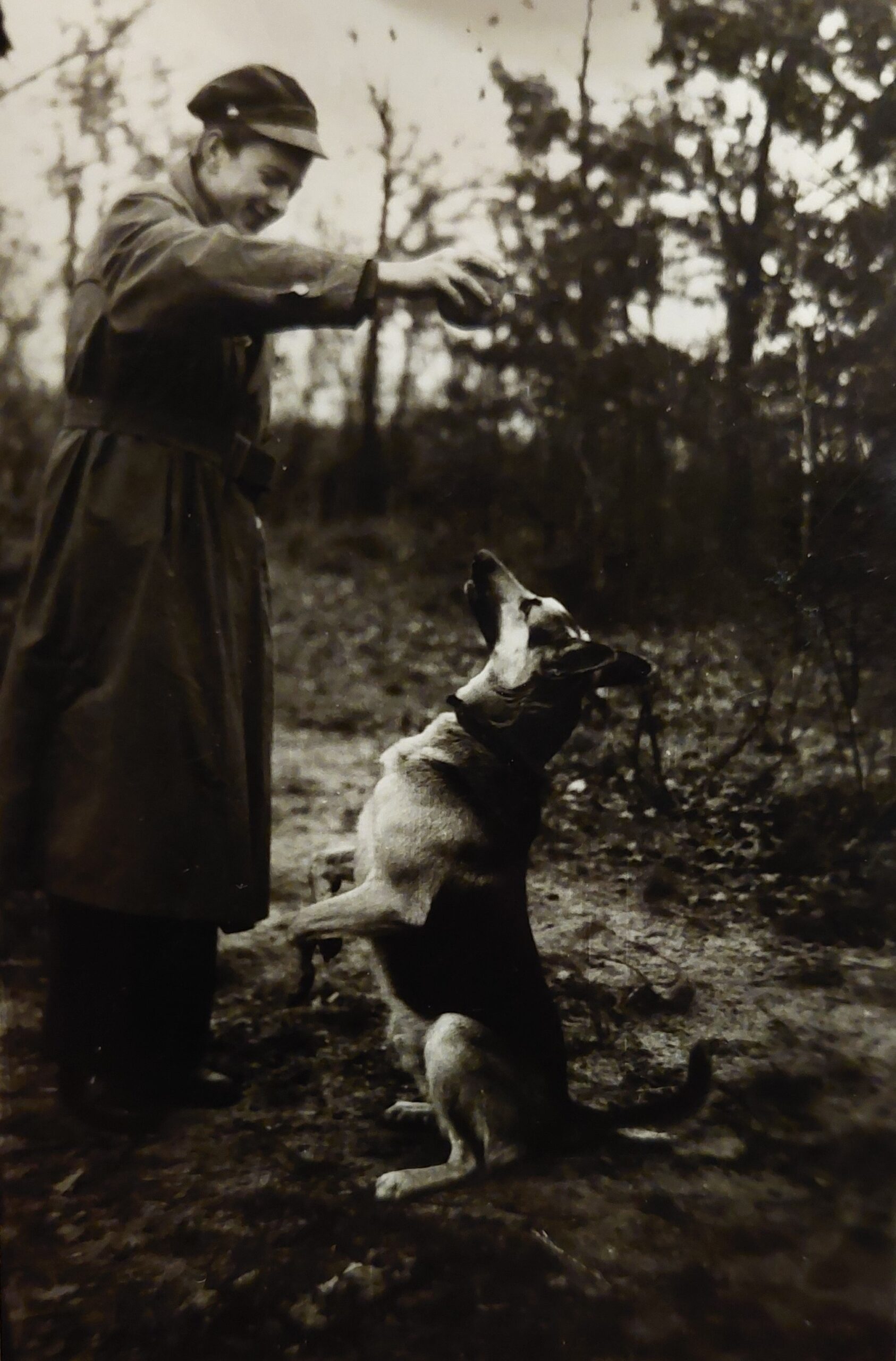 Bogusław Borowiecki z psem na posesji przy ul. Reymonta 43